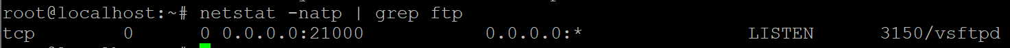vsftpd 가 실행 중이며 TCP 21000번 포트로 LISTEN 중이라는 것을 알 수 있다.