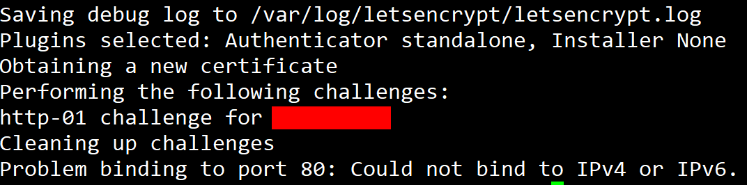 따라서 nginx, apache 와 같이 80 포트를 이용하는 서비스가 있다면 서버를 일시적으로 정지시켜줘야 한다.