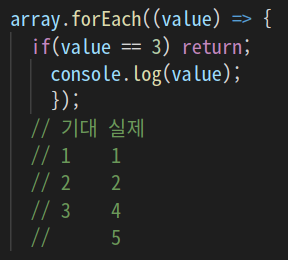 비동기 방식이기 때문에 break나 return를 만나더라도 멈추지 않고 동작한다.